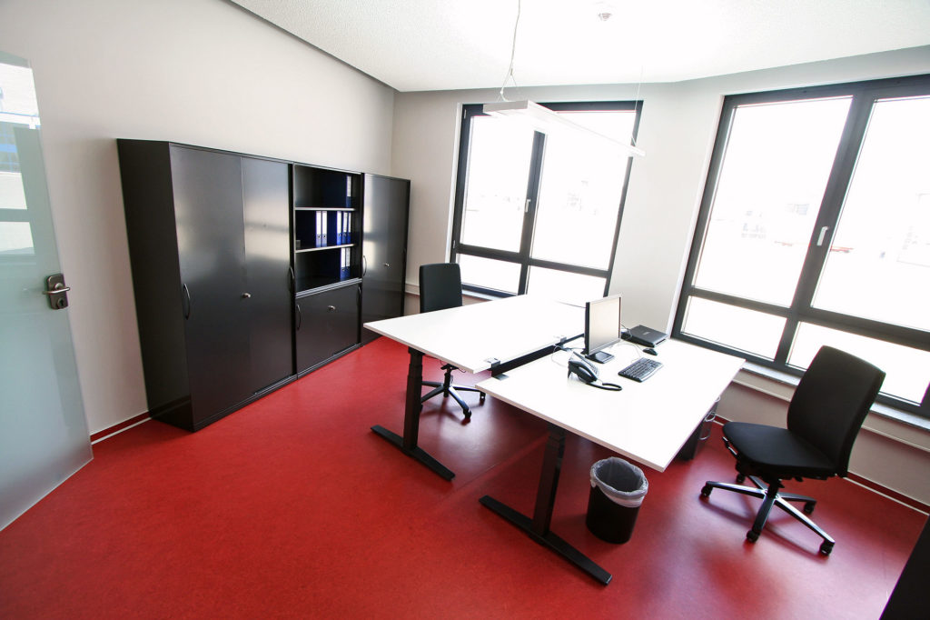Motortische Talo.S und Sys Stahlsschränke in den Büros unterstreichen die technische Tätigkeit des Kunden.